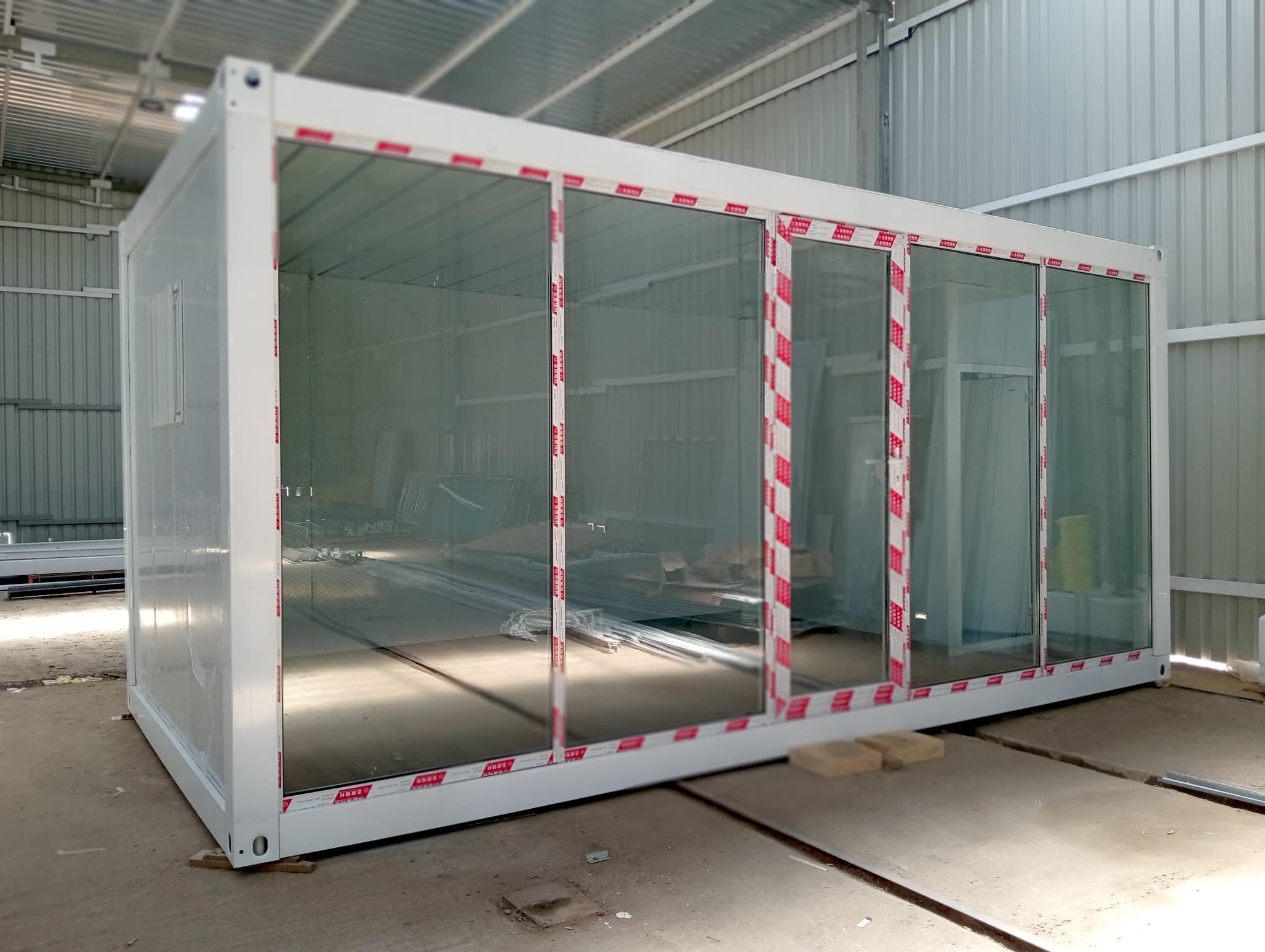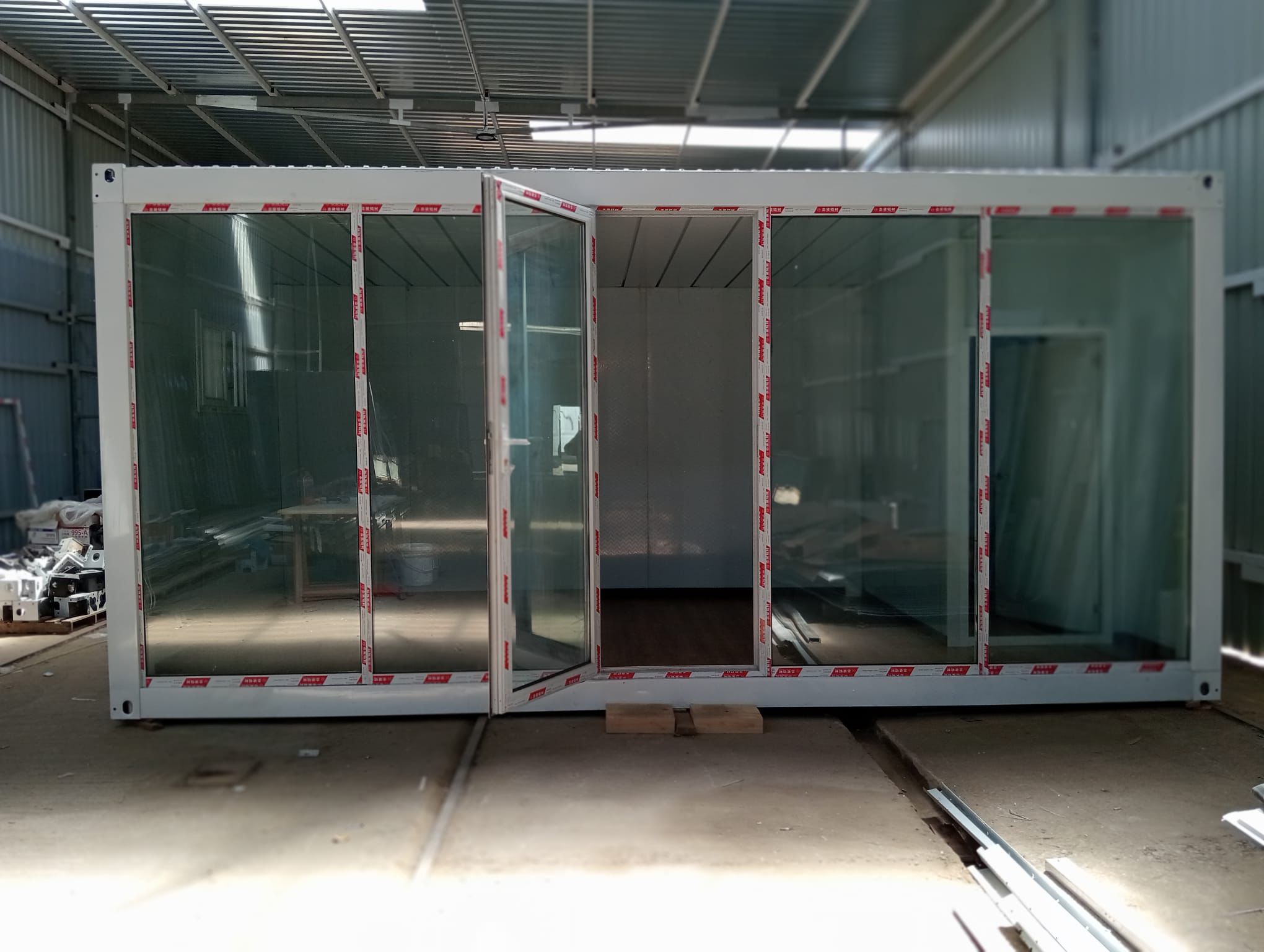 Fabricada con materiales de alta calidad y bajo criterios de eficiencia energética, esta caseta prefabricada ofrece confort durante todo el año. Su diseño incorpora amplios ventanales panorámicos que aportan luminosidad, amplitud y una conexión directa con el exterior.